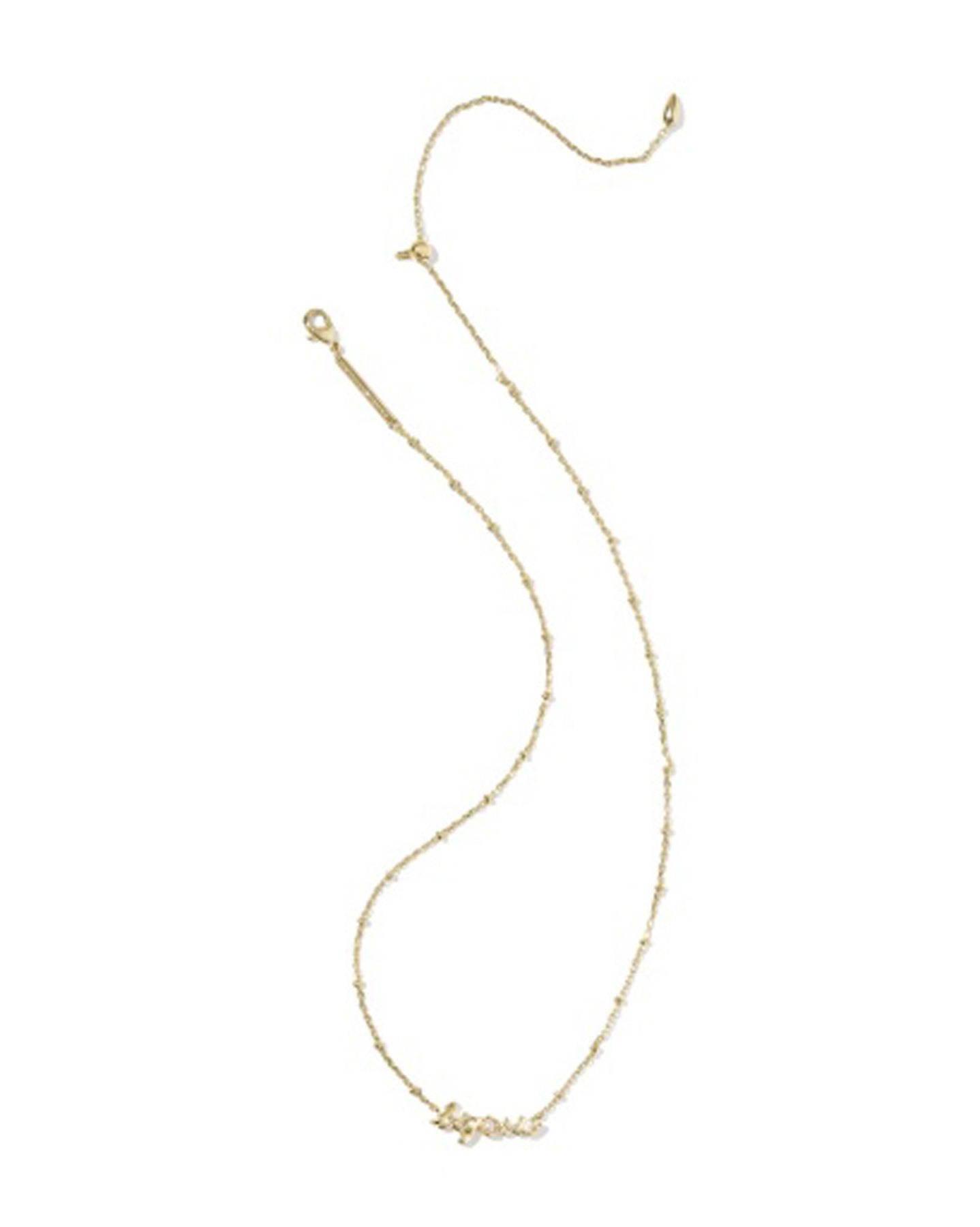 This Kendra Scott Big Sis Short Pendant Necklace in White Pearl and Gold Plated is a meaningful and fun gift for your favorite person! Delicate script adorned with a beautiful White Cultured Freshwater Pearl makes this Necklace so sweet.