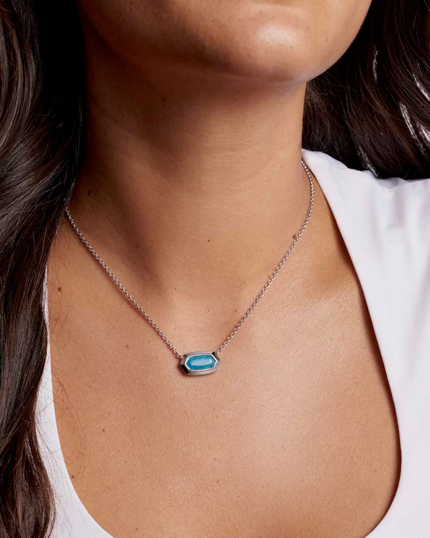 A perfect holiday stone surrounded by a sleek, modern Bezel creates this Kendra Scott Elisa Bezel Oval Pendant Necklace in Variegated Indigo Magnesite and Rhodium Plated. The classic Elisa Oval silhouette has been updated to make it perfect for the holiday season. We love this necklace layered with other Gold necklaces to add a pop of color, or worn alone to take the spotlight.