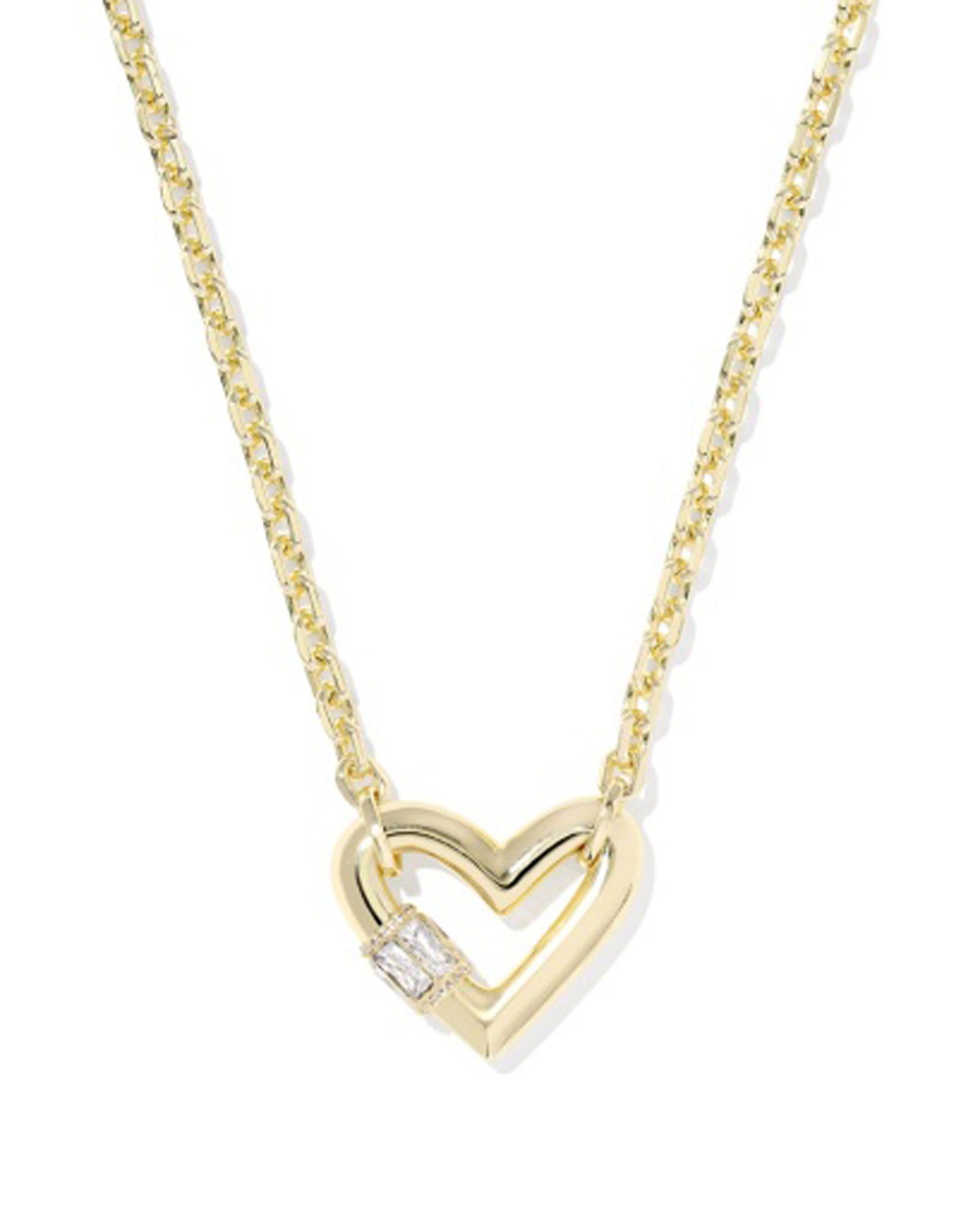 Kendra Scott Emery Heart Pendant Necklace in White Crystal and Gold Plated