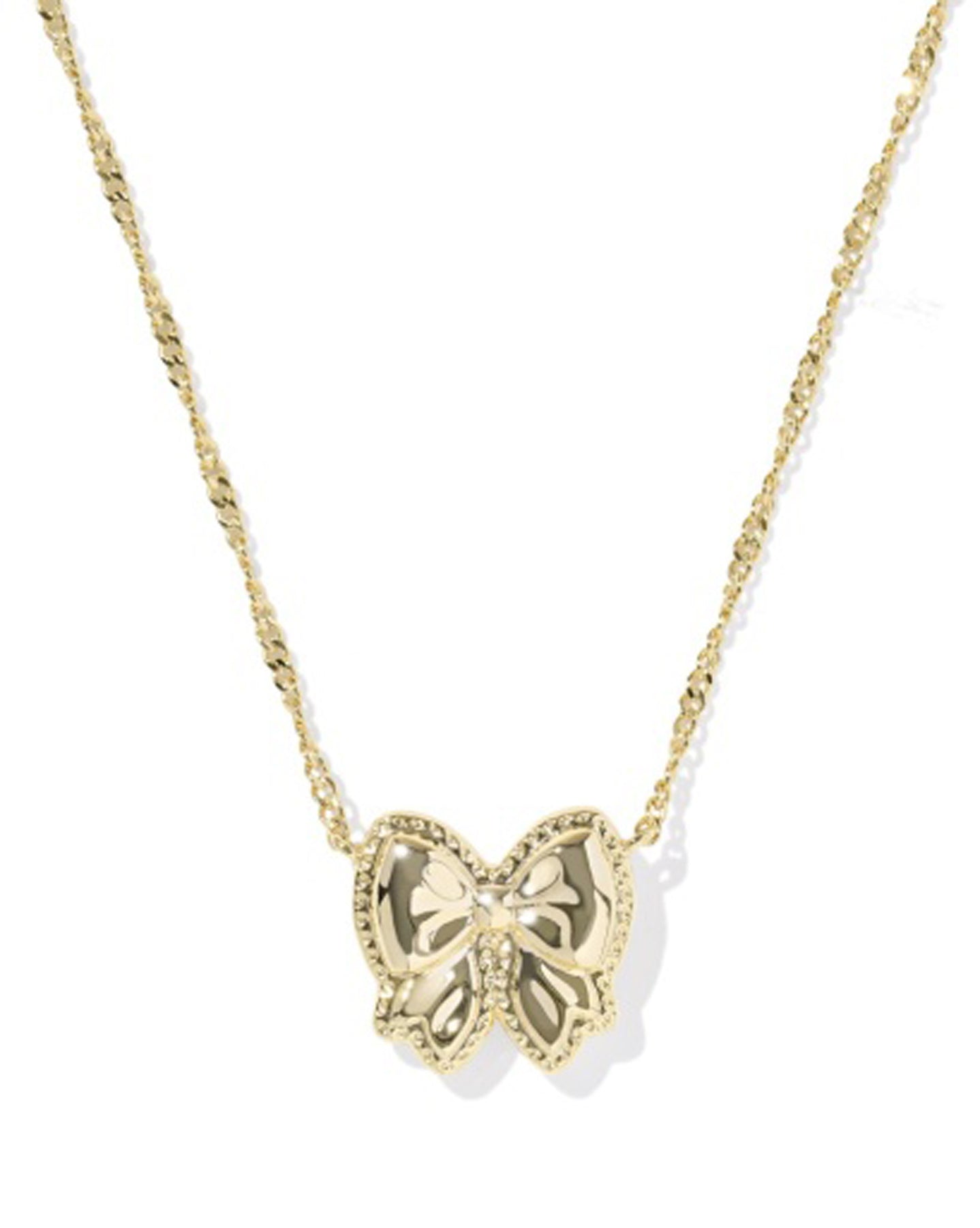 Simple and sweet is the best way to describe this Kendra Scott Haley Bow Short Pendant Necklace in Ivory Mother of Pearl and Gold. This necklace features detailed carved mother-of-pearl to resemble whimsical bow. The pendant is reversible for many styling options!