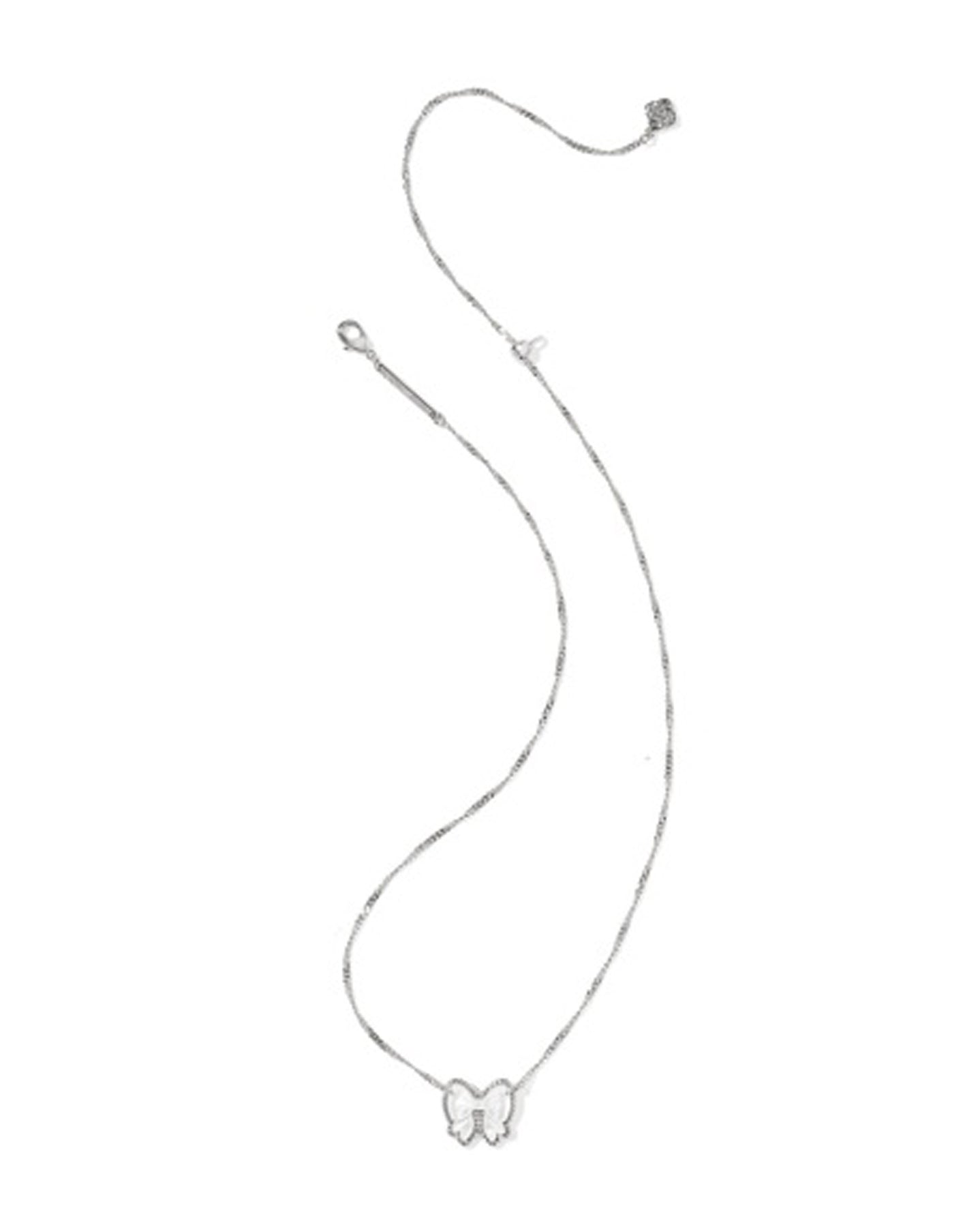 Kendra Scott Haley Bow Short Pendant Necklace in Ivory Mother of Pearl and Rhodium