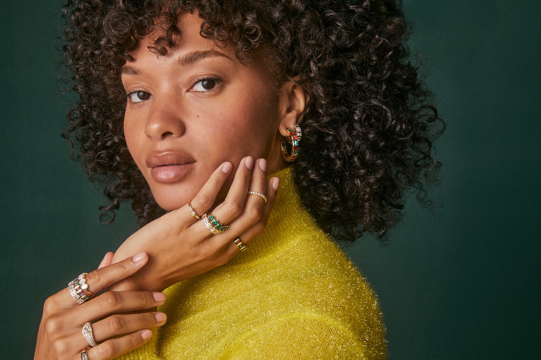 Add some warmth and color to your look with these Kendra Scott Jamie Hoop Earrings in Multi Mix Crystal and Gold Plated. These Hoops feature Jewel Toned Bezel Set Baguette Crystals throughout the whole Hoop paired perfectly with 14k Gold Plated Metal. We also carry the Jamie Huggie Earrings and Ring if you are looking to make a set!