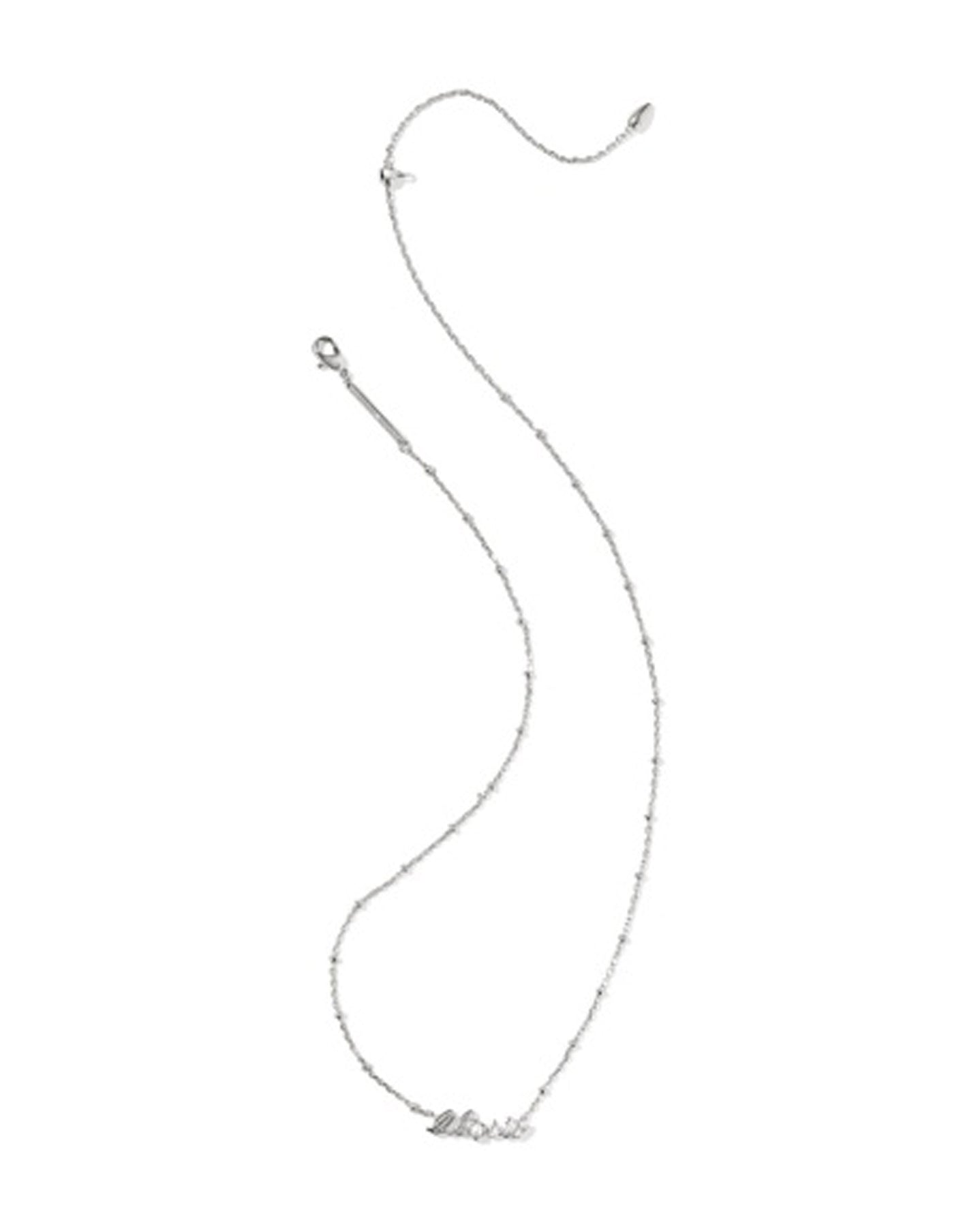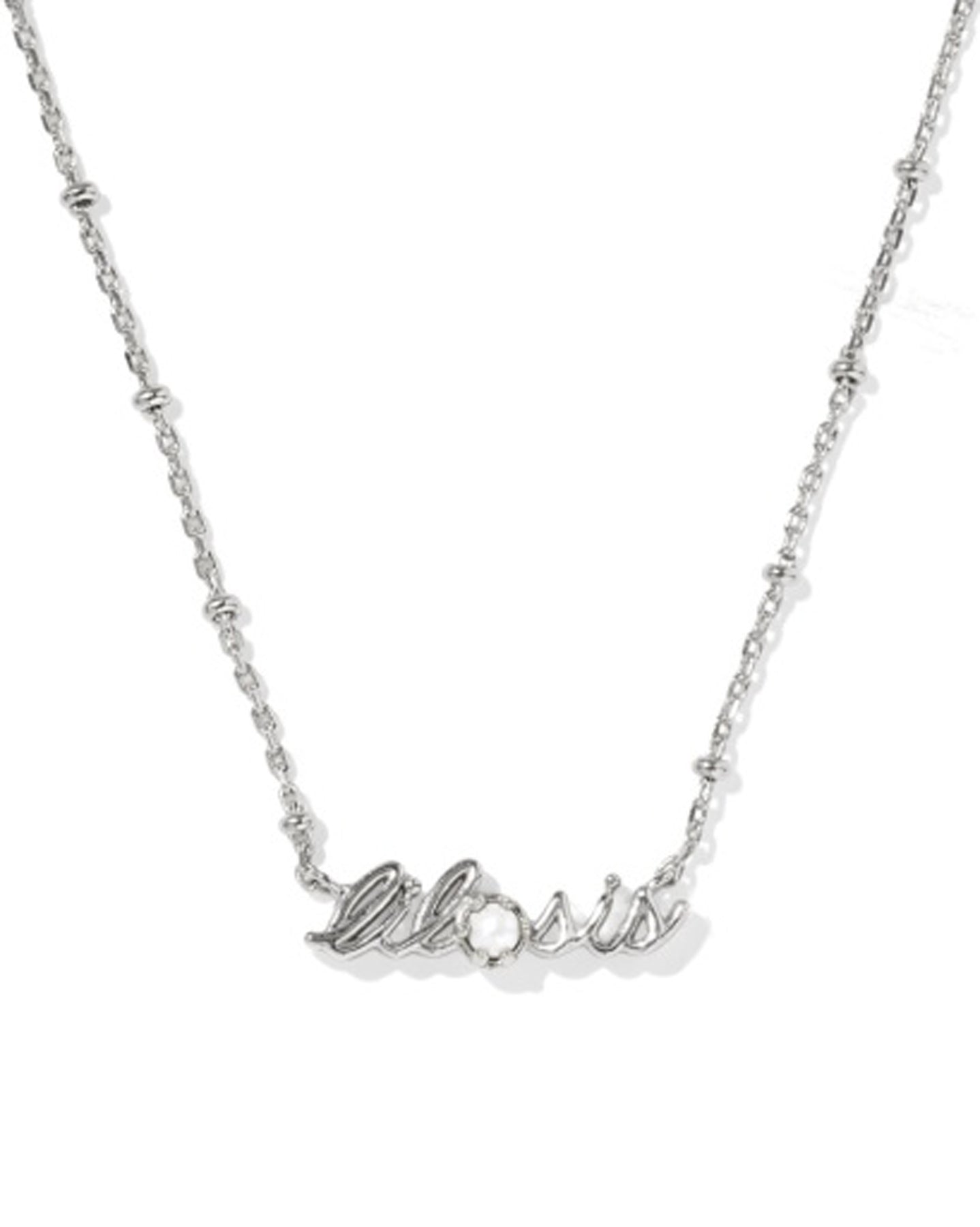 This Kendra Scott Lil Sis Short Pendant Necklace in White Pearl and Rhodium Plated is a meaningful and fun gift for your favorite person! Delicate script adorned with a beautiful White Cultured Freshwater Pearl makes this Necklace so sweet.