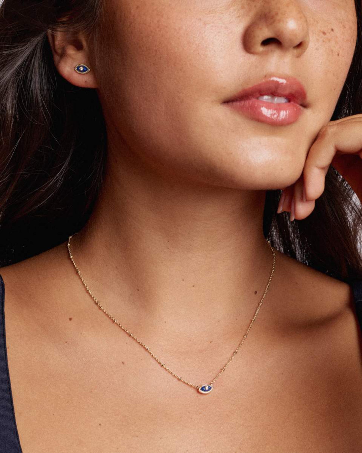 Pair this with the Kendra Scott Mini Eye Tiny Stud Earrings in Dark Blue Magnesite and Gold Plated for the perfect set.