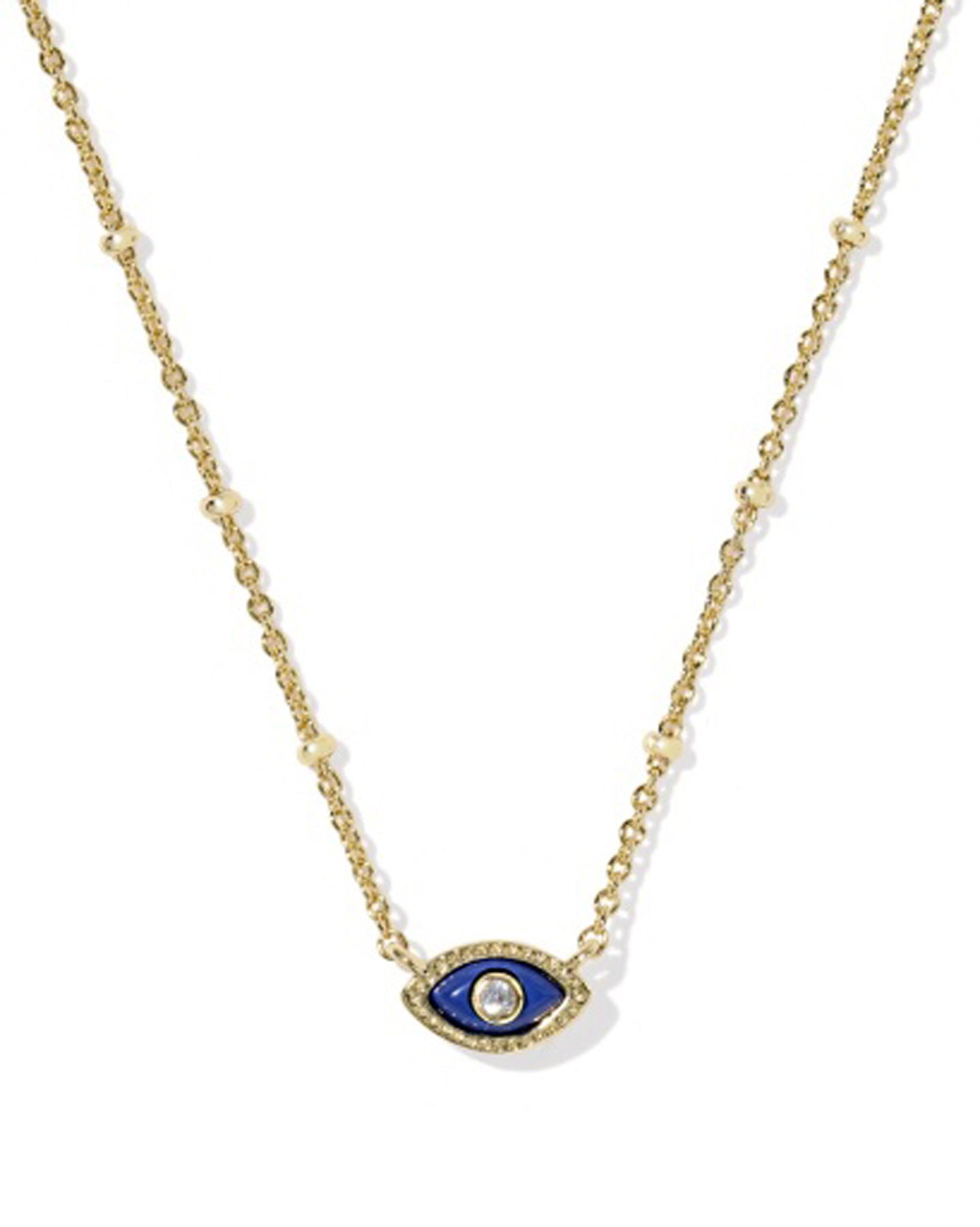 A tiny pendant with big meaning. The Evil Eye symbol represents protection and wisdom. Wear this Kendra Scott Mini Eye Short Pendant Necklace in Dark Blue Magnesite and Gold Plated to embody all that the Eye represents.