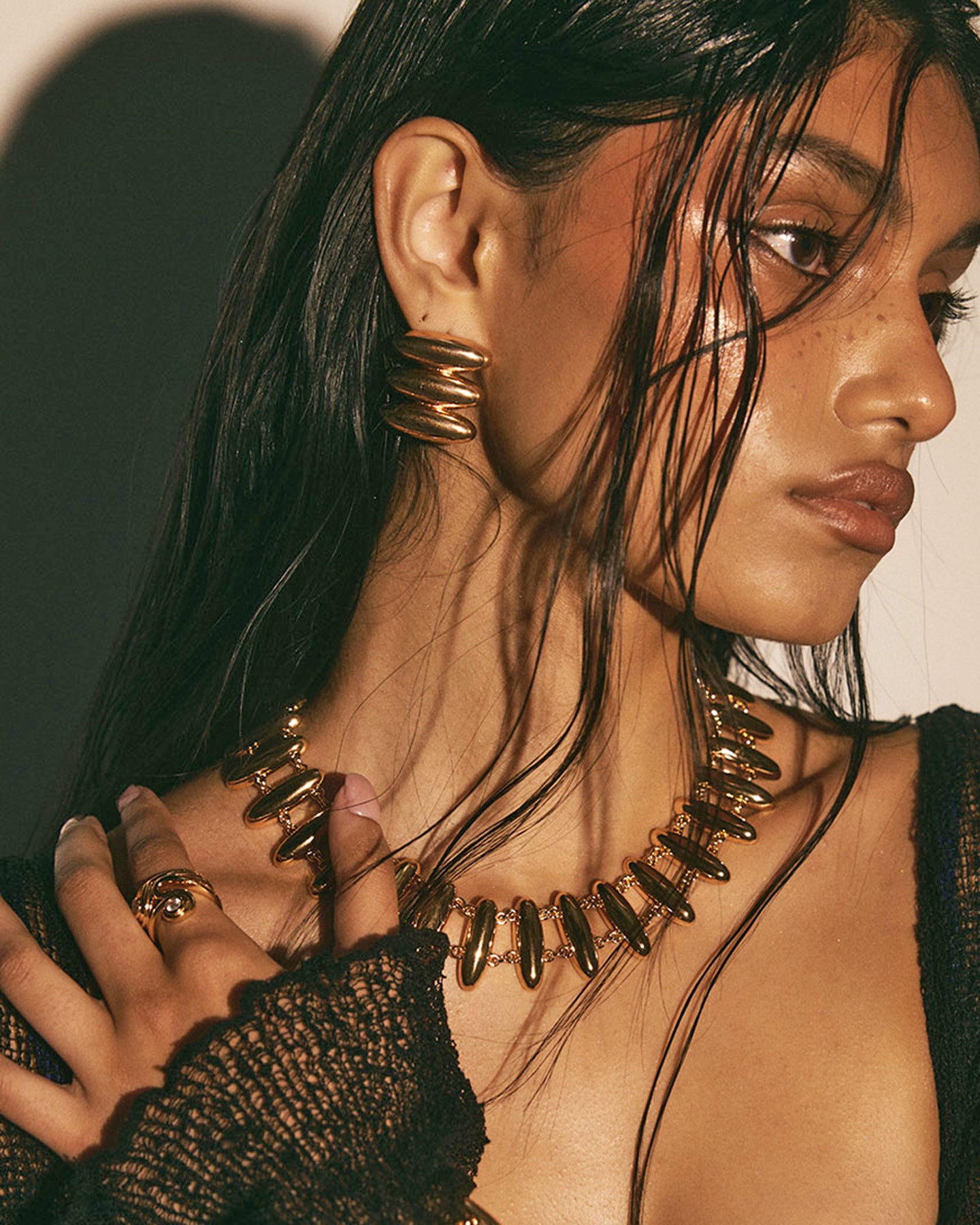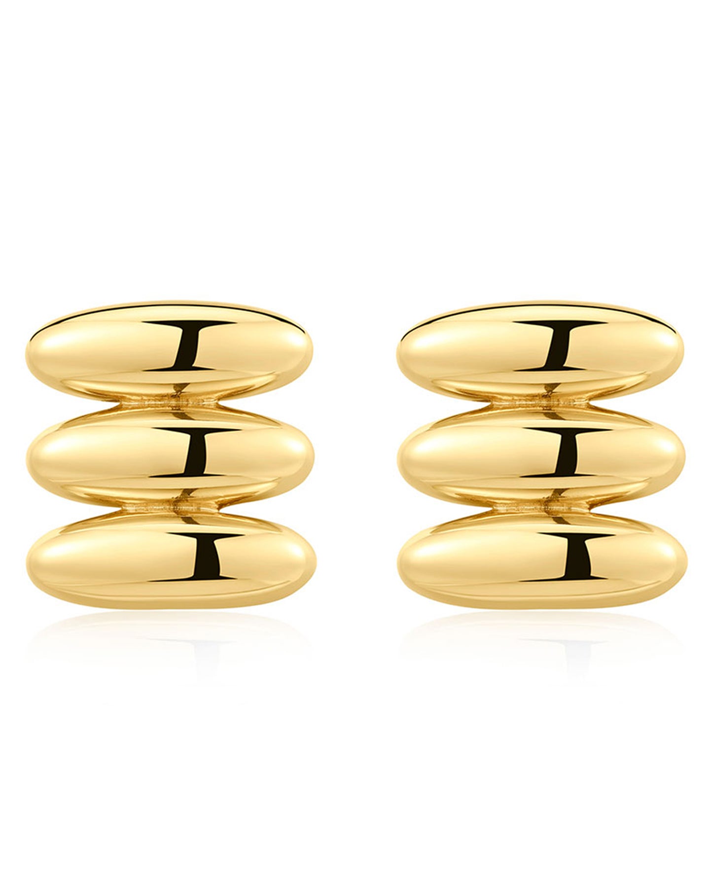 Minimalist style but maximal size! These Luv Aj Milan Bead Statement Stud Earrings in Gold Plated are the ultimate statement studs you have been searching for. Turn heads with these large earrings that are simple in design. These earrings are part of Luv Aj's Night Swim Collection and Inspired by Milanese design. These studs consist of three shiny, Gold Plated, elongated beads stacked to make a simple unique shape. These earrings are nickel-free and cadmium-free.