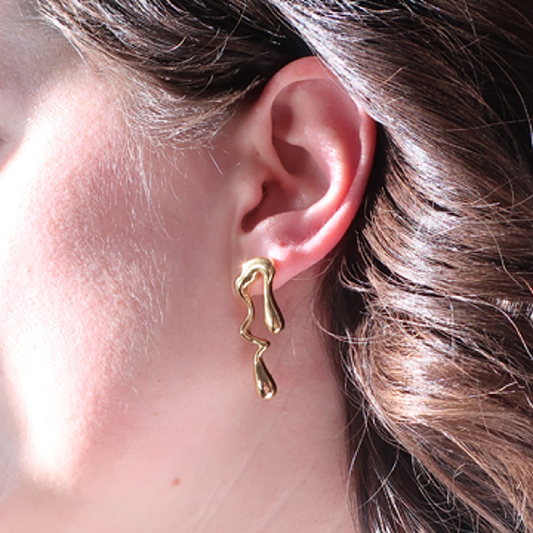 Step out dripping in Gold with these Peter and June Vice Versa Asymmetrical Stud Drop Earrings in 18k Gold Plated. These earrings may not match but they complement each other perfectly! These earrings are 18k Gold Plated over Stainless Steel and they are considered waterproof. Made in the United States, with ethically sourced materials; A unique earring style we love, with great values!
